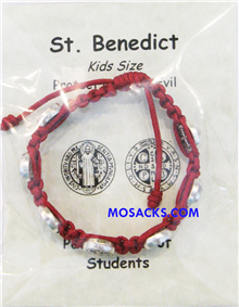 This St. Benedict woven kids bracelet was made with love in Medjugorje while the artist prays for the receiver of the item. Woven St. Benedict Kids Bracelet Red-ZZ5MR