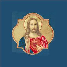 Hand Embroidered Gold Metallic Beau Veste Applique Sacred Heart of Jesus 10-1760 is 9" x 9"