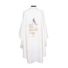 Beau Veste Lamb Of God & Chalice design Chasuble in all Liturgical Colors with design on front & back Free Shipping - 859A 3-1/2" Roll Collar Available