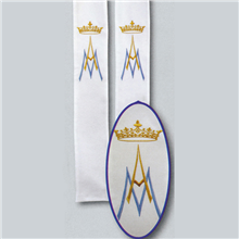 Beau Veste Mary Queen Of Heaven Deacon Stole 10-784 with Gold Crown and Letters A & M Stole available in 8 different colors Shown here as overlay - will come as Deacon Style