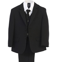 Boys 5 piece Black Poly Poplin suit with garment bag