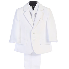 Boys 5 piece White Poly Poplin suit with garment bag
