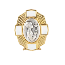 Communion White Enamel with Antique Silver and Gold Plated Finish Metal Stand Boy 12-2540-670, 2-1/4" First Communion Plaque for boy QUANTITY PRICES