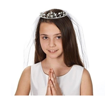 A beautiful Communion veil accented with a sparkling rhinestone tiara, designed to perfectly complement her First Holy Communion dress.