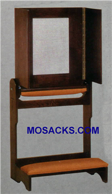 Confessional Prie Dieu w/wood armrest& mesh screen 30" w x 21" d 59 h 40-2600Confessional Prie Dieu 40-2600 with wood armrest & aluminum mesh screen 30" w x 21" d 59" h in confessional position.  Confessional Prie Dieu kneeler 40-2600 can be used in the open Confessional use or closed kneeler only use.
