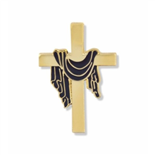 Cross Purple Robe Gold Pin 1" SJ4216 with a tie tack backing SJ4216, Cross with Shroud pin QUANTITY PRICES