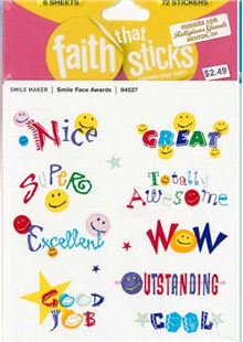 Faith That Sticks Smile Face Awards-94527 includes 6 Jesus sticker sheets