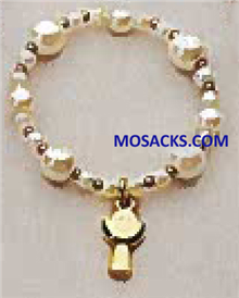 First Communion Gold Pearl Chalice Bracelet by Roman Inc. is a stretchy bracelet with imitation pearl and silver plated metal. First Communion Gold Pearl Chalice Bracelet-26281D QUANTITY PRICES