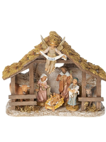 Fontanini 5 Inch Scale 7-PC Nativity Set with Italian Stable