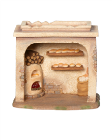 The 5" Scale Lighted Bakery Shop is designed to add detail to a nativity marketplace.