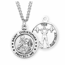 St. Christopher Round Sports Medal Weight Lifting in Sterling Silver S902224