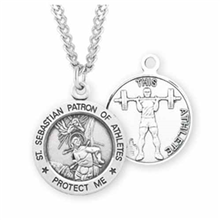 St. Sebastian Round Sports Medal Weightlifting in Sterling Silver S905224
