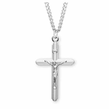 Sterling Silver Beveled Crucifix 1-1/2"on a Stainless Steel 24" Chain