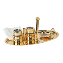 Holy Oils Stocks, Baptismal Shell, Holy Water Sprinkler, Tray and Finger Cloth - Baptismal Set 5 pc - K715