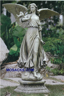 Joseph's Studio Pedestal Angel 27053. This is a large Magnificent Pedestal Angel with large spanned wings, a flowing gown and a bird perched on her arm, 46.5"H 22.5"W 15"D27053