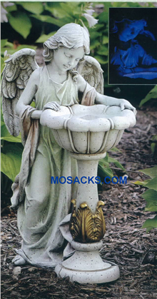 Joseph's Studio Solar Angel Birdbath 47237. Joseph's Studio birdbath with a standing Angel looking into a solar birdbath with a pedestal base with gold leafing, 23" H 47237 FREE SHIPPING ON $100. ORDERS