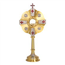 Monstrance 28" High holds 2-3/4" Host K682 Monstrance with Red Stones & Red Enamel Crosses and Symbols of the Four Evangelists FREE SHIPPING