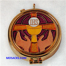 K Brand Pyx Gold Plate with Enameled Chalice & Hands 7 Host capacity K187