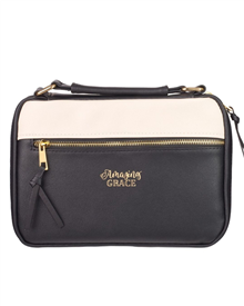 This is a black Bible cover with "Amazing Grace" embossed in gold on the front with a zipper pocket