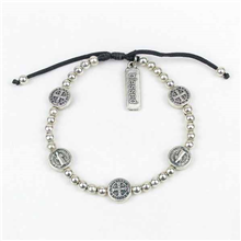 Birthday Blessing Bracelet with Silver Beads and 5 Silver Benedictine Medals