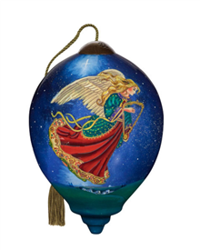Sumptuously clothed in jewel-toned robes, a glorious angel plays her harp from the heavens in celebration of the First Noel.