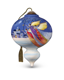 Angels We Have Heard On High Ornament. Above a wintry scene in robes of joyful colors.