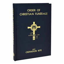 The Order Of Christian Funerals is a liturgical book that now includes the Cremation Rite. This book is bound in blue leather with gold embossing.