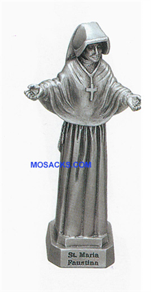 Pewter Statue St. Maria Faustina-JC3063E is made of Pewter, gray in color and 3.5 inches in height. Retired item. Please call to check availability before ordering!!