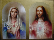 Sacred Heart of Jesus & Immaculate Heart of Mary painting on wood by Guiseppe Vicentini.