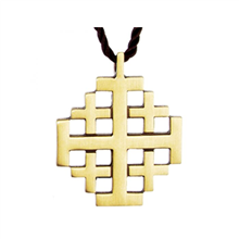A polished bronze Jerusalem Cross pendant with symbolic cutouts, on a 14” cord, beautifully gift boxed, perfect for Confirmation, retreats, or spiritual inspiration.