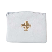 Rosary Case Leather With Gold Cross Zipper (White)