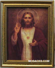 5" x 7” Sacred Heart of Jesus with Halo print in Gold Leaf Frame 7700-5710 Overall size 6.5" x 8.5".