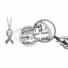 Serenity Prayer Ribbon View Finder Pendant #13861 Silver on 20" chain features a secret center stone view finder; see the Serenity Prayer #13861