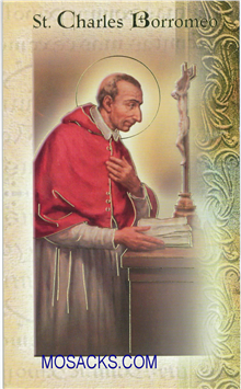 St. Charles Borromeo Laminated Bi-fold Holy Card, F5-424