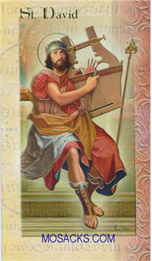St. David Laminated Bi-fold Prayer Card, one of the Mini Lives of The Saints biography holy card, in Gold Stamped Italian Art and made in Italy, F5-433 QUANTITY PRICES