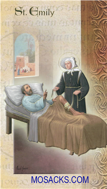 Laminated Bi-fold Prayer Card of St. Emily, one of the Mini Lives of The Saints biography St. Emily holy card in Gold Stamped Italian Art and made in Italy, F5-435 QUANTITY PRICES