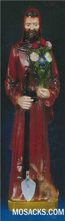 St. Fiacre 24” full color Religious Statue-SA2412C. Made of Durable PVC Plastic St. Fiacre Statue is designed for lasting durability indoors and outdoors. Also in White, Granite, Bronze, Patina and Wood Stain. FREE SHIPPING on orders over $100.