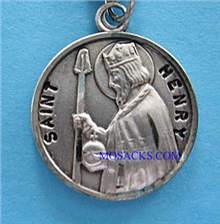 St. Henry Sterling Silver Medal, 3/4" diameter with a 20" Stainless Steel Chain in a Velour Gift Box.