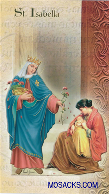 Laminated Bi-fold Prayer Card of St. Isabella, one of the Mini Lives of The Saints, biography holy card in Gold Stamped Italian Art and made in Italy, F5-451 QUANTITY PRICES