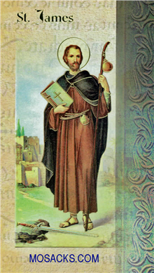 Laminated Bi-fold Prayer Card of St. James, one of the Mini Lives of The Saints, biography holy card in Gold Stamped Italian Art and made in Italy, F5-456 QUANTITY PRICES
