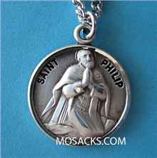 St. Philip Sterling Silver Medal, 3/4" diameter with a 20" Stainless Steel Chain in a Velour Gift Box.
