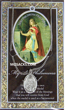 St. Philomena Pewter Medal 1-1/16" h 950-520. St. Philomena Pewter Medal 1-1/16" h including the cast loop is on an 18" Stainless Steel Chain 950-520