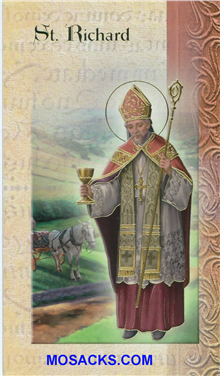 Laminated Bi-fold Card of St.Richard, one of the Mini Lives of the Saints, a biography holy card with Gold Stamped Italian Art and made in Italy, 12F5-530 QUANTITY PRICES