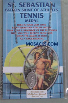 This St. Sebastian Sports Pewter Tennis Medal 12-650-8047 is a great gift for a female who plays tennis. 18" Stainless Steel Chain.