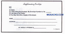Supplementary Envelope 6-1/4 x 3-1/8 #304 is perfect for any visitor, new parishioners, or for those who did not bring an envelope. It lists name, address, and amount. 500 Count. FREE SHIPPING on orders of $100.00 or more