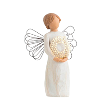 Willow Tree Angel Figurine Sweetheart of a girl with metal wings holding a golden wreath with hearts.
