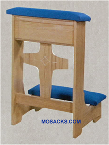 W Brand Prie Dieu Kneeler with shelf & padded armrest 22" w x 21" d x 32" h 40-53A. This Prie Dieu Kneeler with shelf and padded armrest has an open front with cross. Various wood stains and colored fabrics are available 40-53A FREE SHIPPING