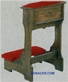 W Brand Prie Dieu Kneeler with padded armrest and a shelf 22" w x 21" d x 32" h 40-58A. This Prie Dieu Kneeler with a slanted shelf for arm comfort is available in various wood stains and colored fabrics 40-58A FREE SHIPPING