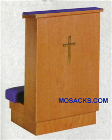Prie Dieu Kneeler with padded armrest and a shelf 22" w x 18" d x 34" h 40-8012. This Prie Dieu Kneeler is available in various wood stains and colored fabrics and the brass cross is available at an additional charge 40-8012 FREE SHIPPING