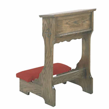 W Brand Wedding Prie Dieu Kneeler w/ shelf and padded armrest 42" w x 21" d x 32 " h (22" wide shown here) Prie Dieu Kneeler w/ shelf and padded armrest. Various wood stains and colored fabrics are available 40-58WA FREE SHIPPING